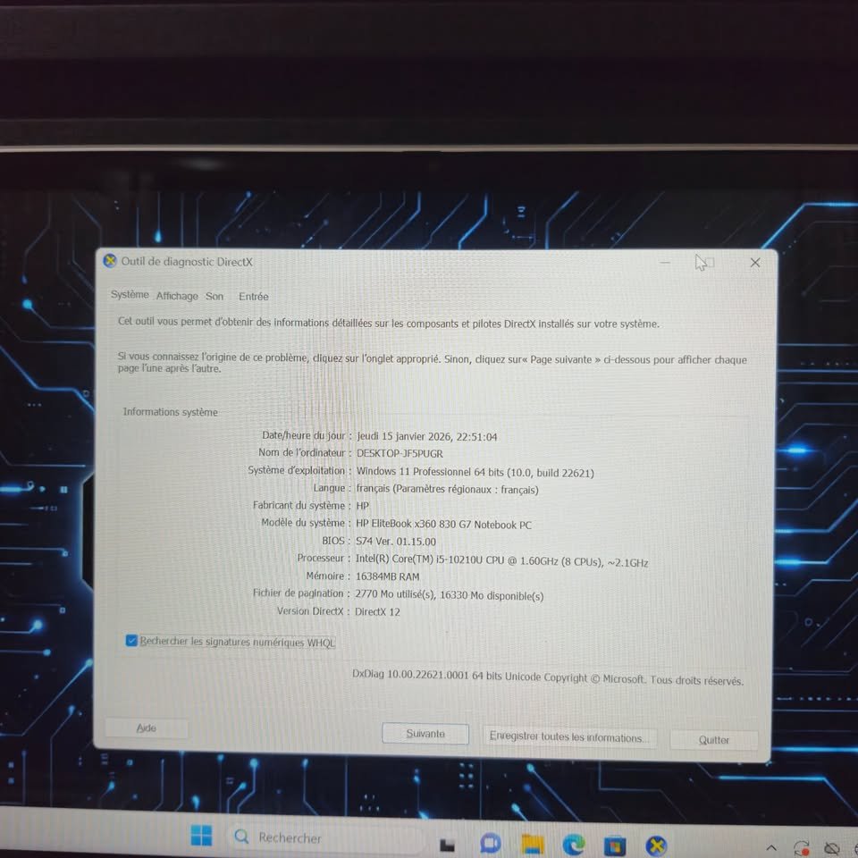 Processeur : Intel Core i5-10210U (10ème Génération).